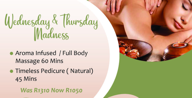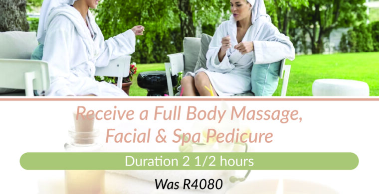 List of treatments: 45 Min – Full Body Massage 45 Min – Facial 45 Min – Spa Pedicure Valid: Monday to Friday, excluding Saturdays, Sundays, Public and School Holidays.
